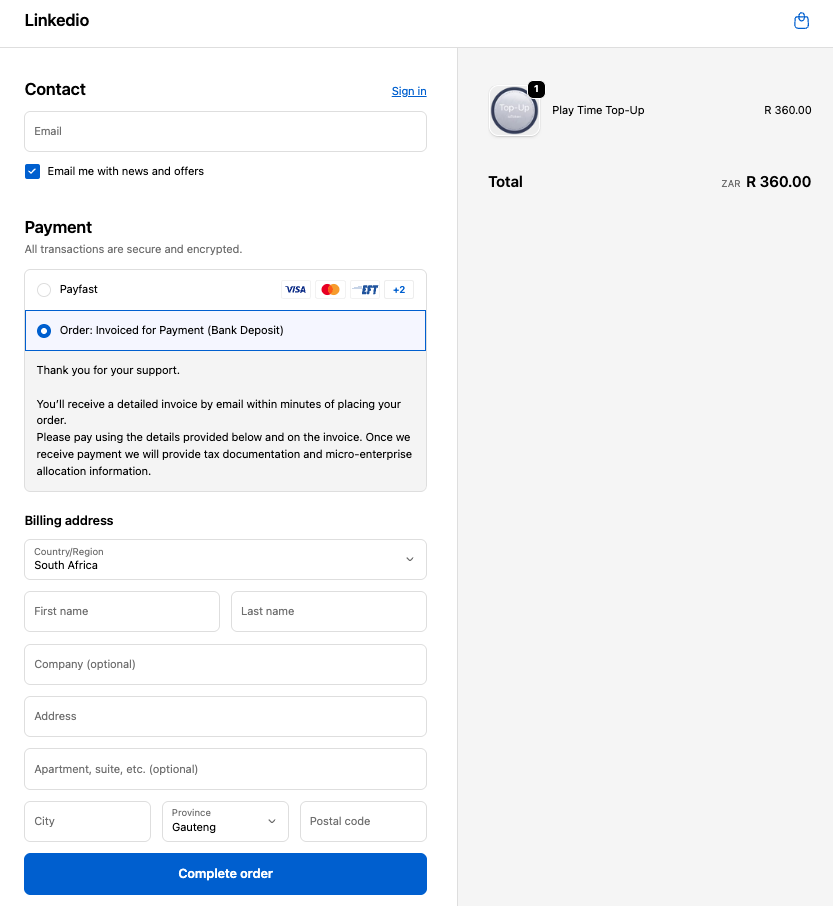 Please Chose Bank Debit Order, We will contact you via email with invoice and documentation.